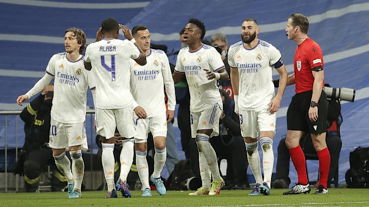 9 de marzo de 2022. El club merengue aguantó perdiendo por la mínima (1-0) y en el tiempo de descuento en la ida. En la vuelta, pese a que Kylian Mbappé adelantó a los galos, un hat-trick de Karim Benzema permitió a los blancos remontar (3-1) el partido y la eliminatoria.