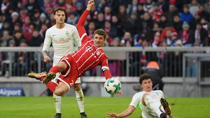 Colombian playmaker James Rodríguez dinked a clever through ball into the penalty area, bypassing the Werder Bremen back line, and Müller raced through to calmly guide a volley into the back of the net.