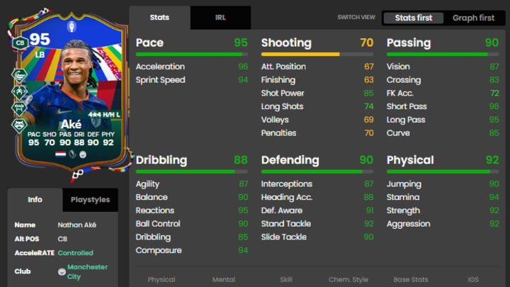 The card likely won't fall out of favor in endgame squads either considering the four PlayStyle+ badges. Also, perhaps EA Sports will add Evolutions during the summer promotion that will make Ake even better.